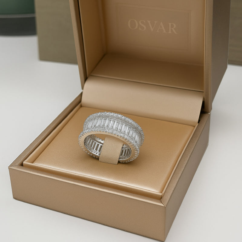 La moissanite est une pierre précieuse créée en laboratoire, proche du diamant en apparence, mais avec une brillance encore plus intense. Elle a été découverte à l’origine dans un cratère de météorite, et est aujourd’hui reproduite de manière éthique et contrôlée.